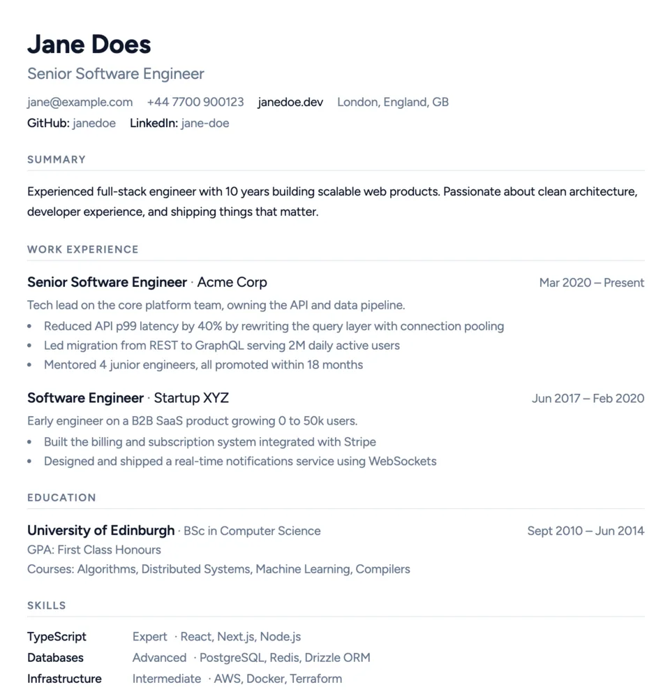 Get a nice, ready to send Curriculum Vitae in minutes. No registration required!